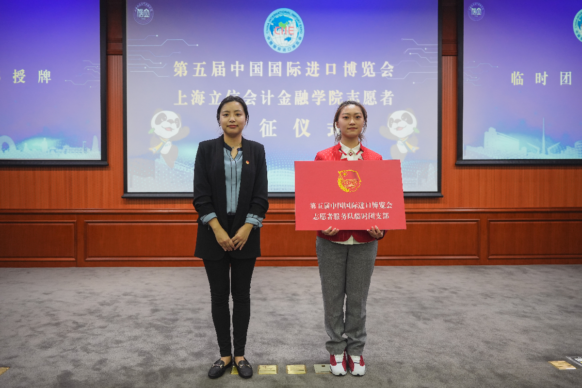 我校历来高度重视进博会志愿服务工作,从2018年首届进博会以来,连续五年为进博会共选派了640名志愿者,他们以全面优质的志愿服务获得了多方好评。随着第五届中国国际进口博览会的启动,我校积极响应号召,于今年9月正式启动招募工作,经过层层选拔,共遴选出49名进博会志愿者。他们将发挥专业特长,服务于进博局招商处成交统计事务助理、展期签约台、境外专业观众服务等岗位。