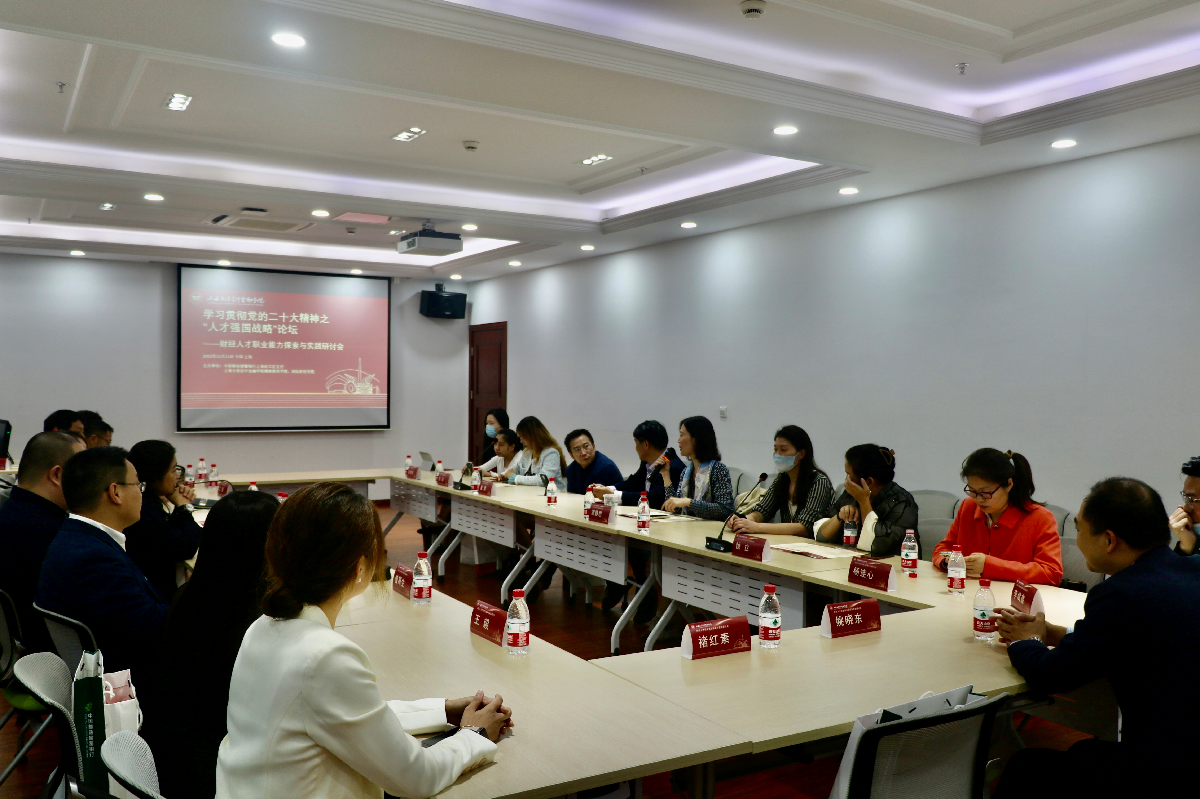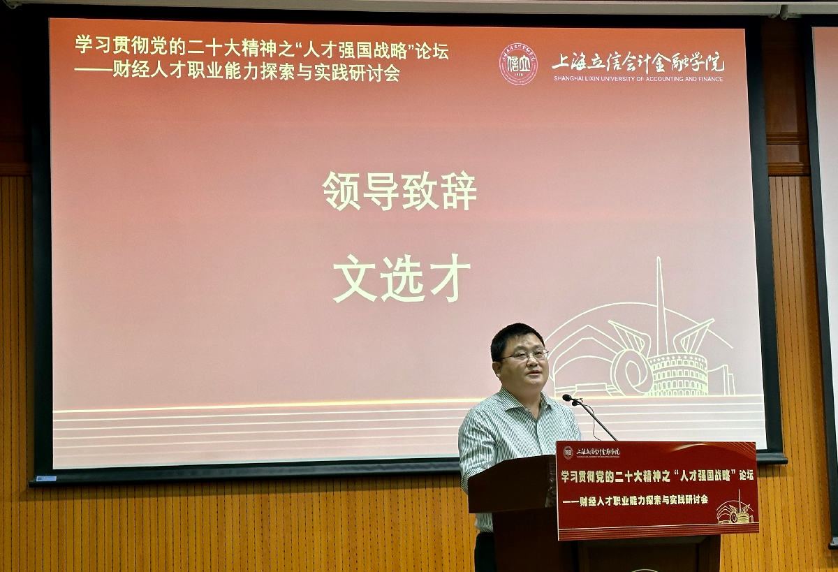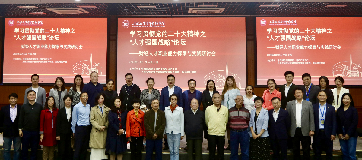 为学习贯彻党的二十大精神,深入实施人才强国战略,11月11日下午,由继续教育学院、国际财经学院和中国邮政储蓄银行上海虹口区支行联合主办的“财经人才职业能力探索与实践研讨会”在中山西路校区举行。校党委副书记文选才,学院历任领导胡厚麟、罗健雄、夏志栋、单惟婷、赵斯泓、汪生才,中国邮政储蓄银行上海虹口区支行党总支书记、行长谢静思,上海诺潇智能科技有限公司总经理马利峰等15位优秀校友出席研讨会。研讨会以线上线下相结合的方式同步进行,学院党总支书记褚红素主持主会场、副院长张海琼和朱海春主持分会场。