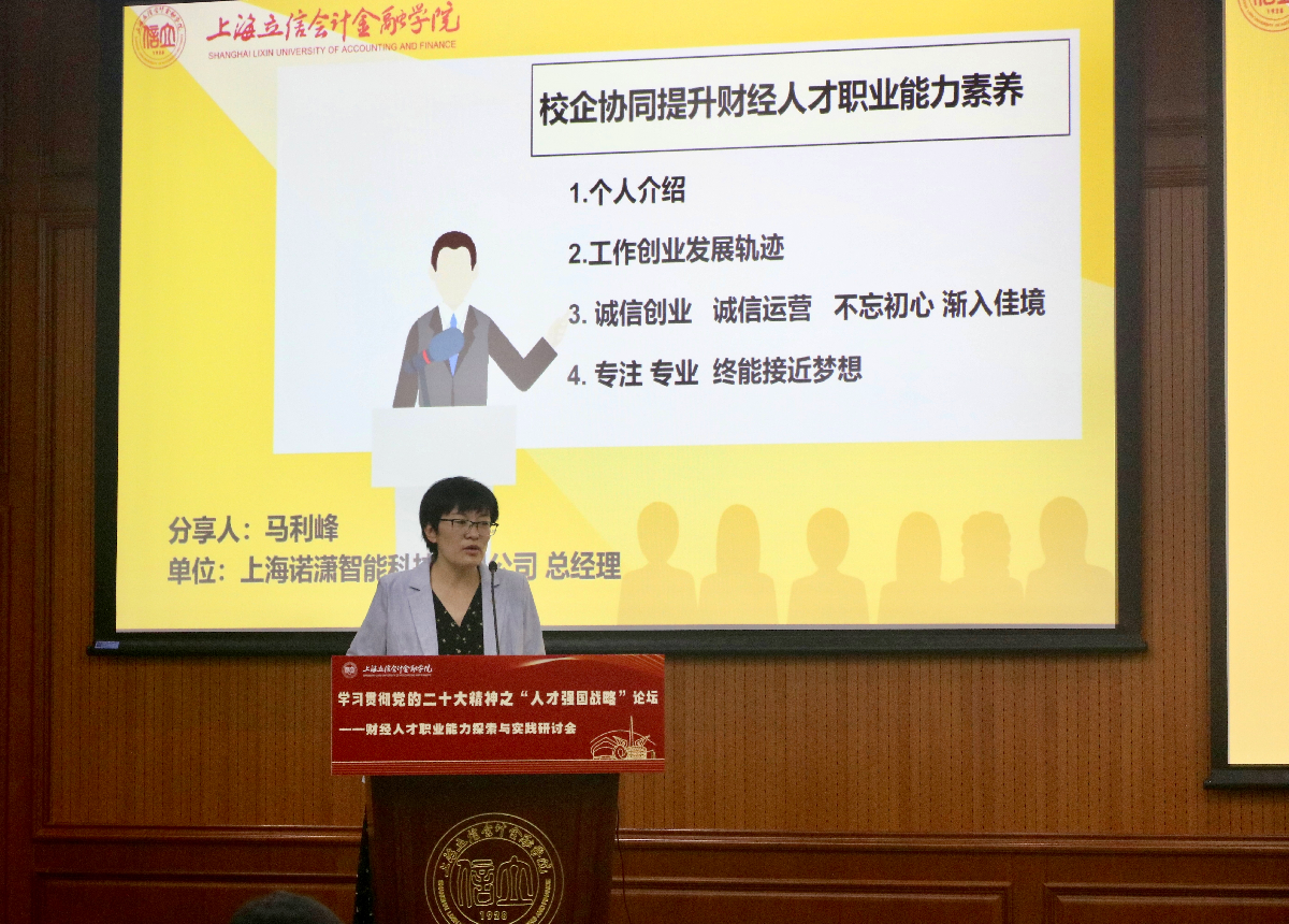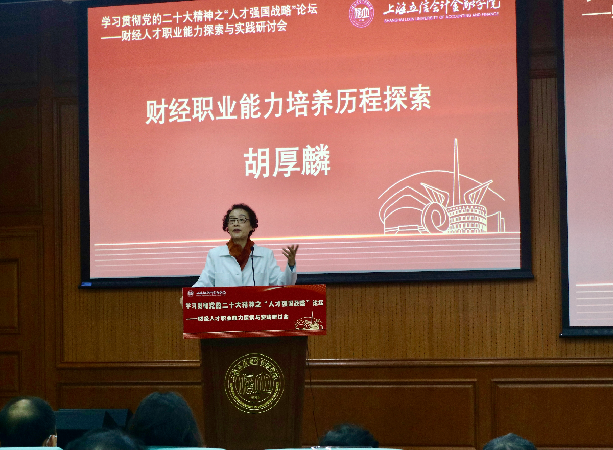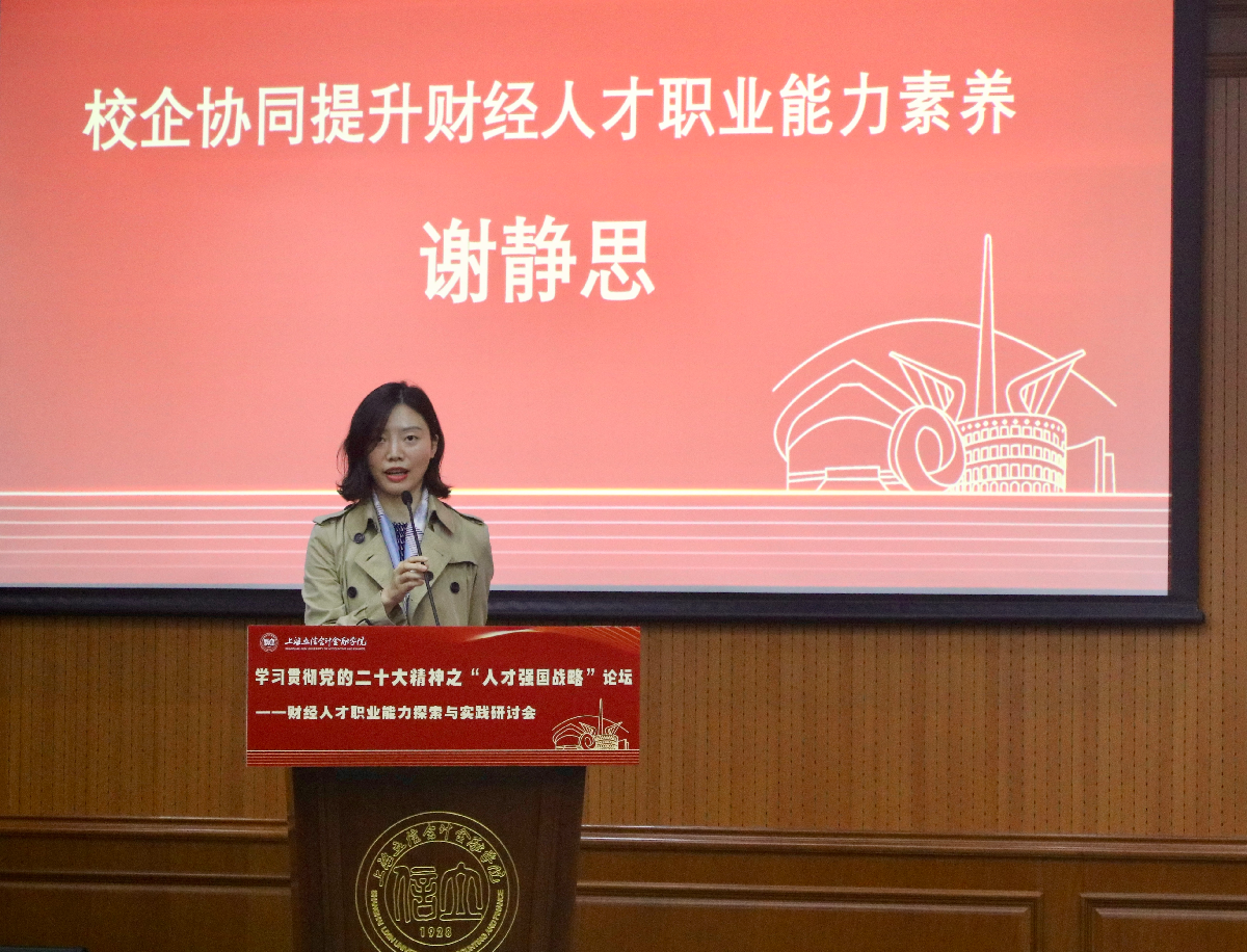 胡厚麟、马利峰、谢静思分别围绕“财经职业能力培养历程探索”和“校企协同提升财经人才职业能力素养”等发表了主旨演讲。胡厚麟满怀深情地回顾了立信夜大(继续教育学院、国际财经学院前身)的发展历程。她指出,立信会计补习学校是潘序伦先生“三位一体”会计事业的重要组成部分,学校历来重视教学质量、教学方法和教学效果,注重实务训练、坚持学习与实验并重,赢得了良好的社会声誉。她勉励大家在新的发展起点上,依靠特色优势学科、加强师资队伍建设、重视教学手段革新、关注受教育者需求,探索与实践契合继续教育发展规律的财经人才能力素养培养的新模式,奋力开创改革发展的新局面。马利峰和谢静思作为资深业界人士和立信校友,结合自身成长经历和职场经验,交流了对财经人才职业能力培养内容和方式的看法。校企合作是培育专业人才的有效方法和途径,离不开企业和学校的共同努力,企业将持续加强与学院在人才培养模式改革、实训基地建设和实习就业等方面的合作,全力助推人才培养的高质量发展。