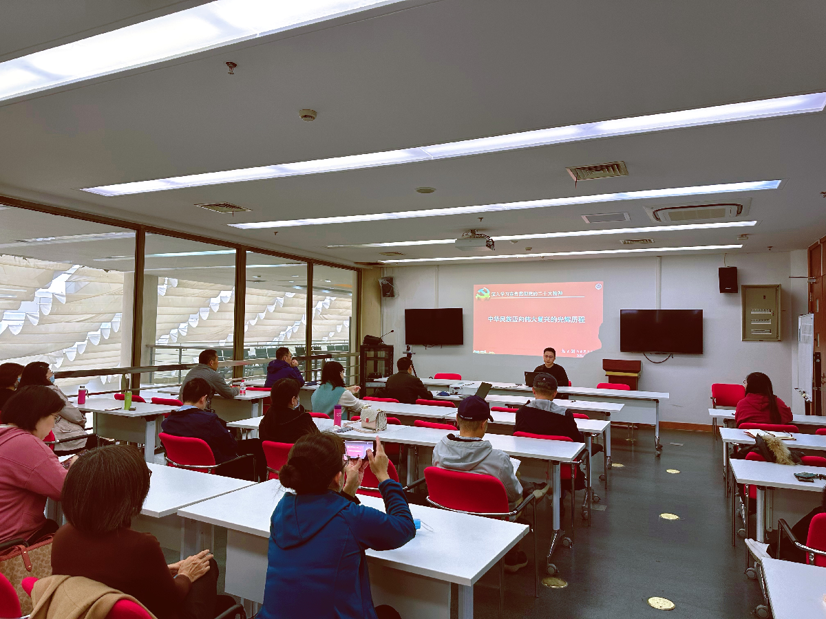 张光润在辅导报告中就中华民族伟大复兴的由来、中华民族伟大复兴的历程、以中国式现代化全面推进中华民族伟大复兴三个方面,为图书馆全体教工进行了阐述,分享了自己的学习、研究体会。