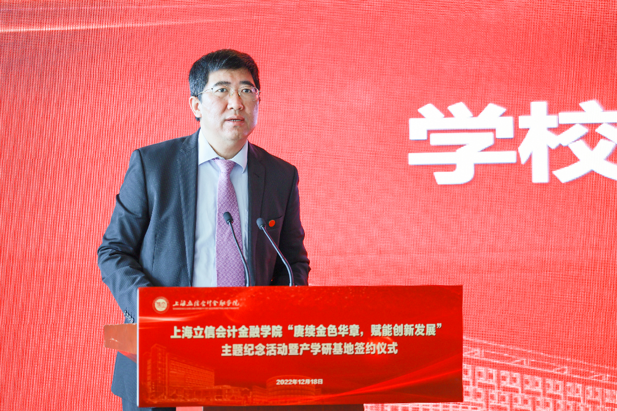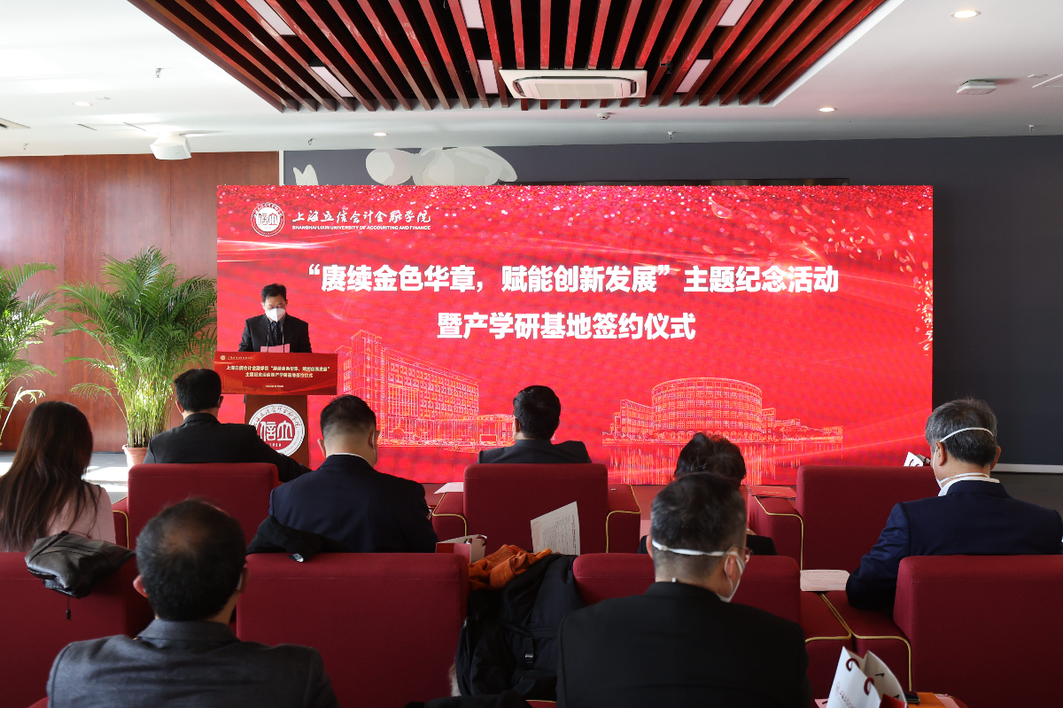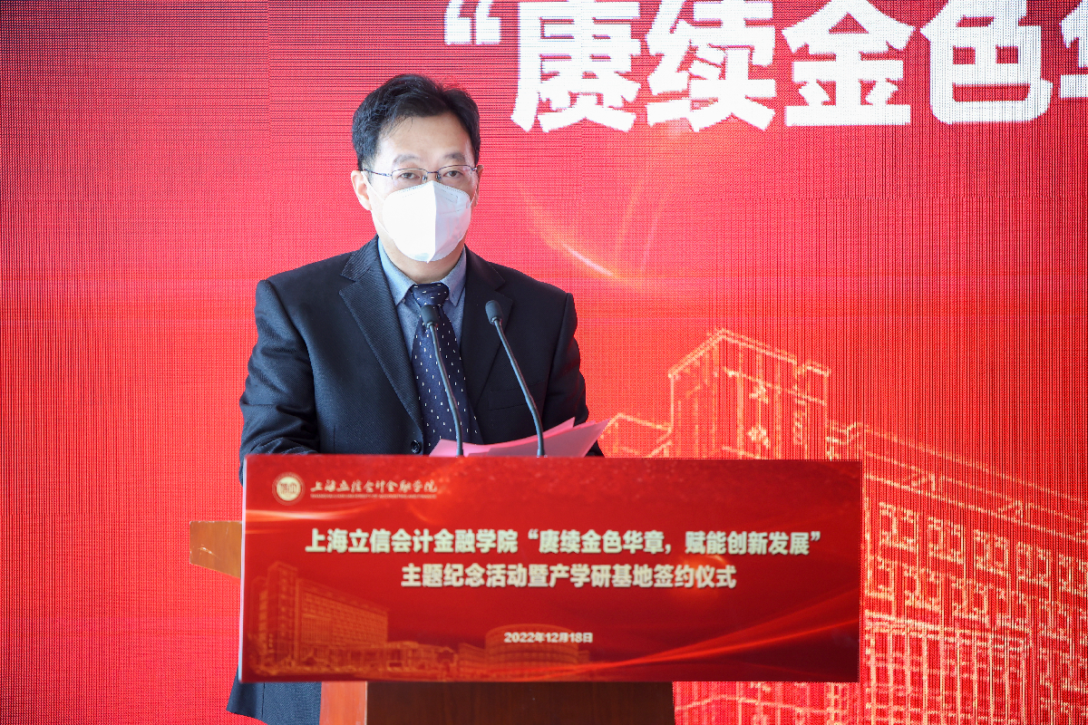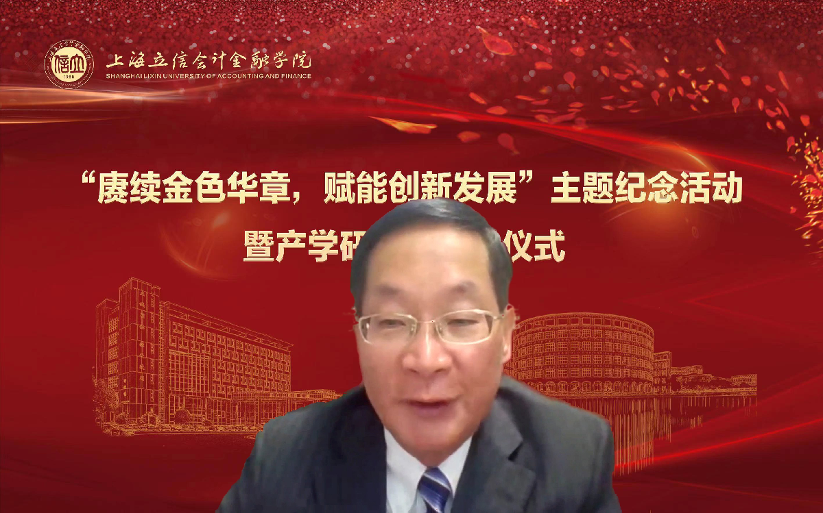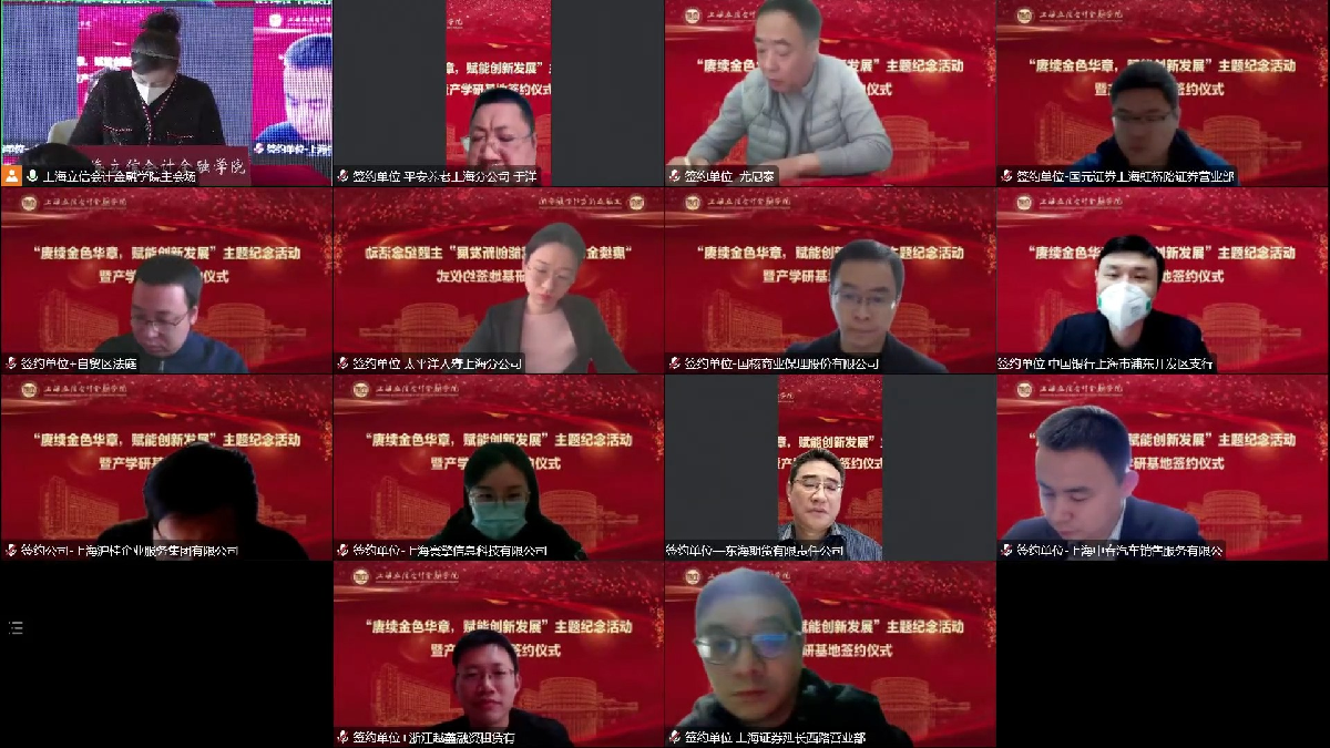 12月18日,“赓续金色华章 赋能创新发展”主题纪念活动暨产学研基地签约仪式在上川路校区木兰书苑举行。中共上海市金融工作委员会书记信亚东,上海市教育卫生工作委员会副书记、上海市教育委员会主任王平,中国人民银行调查统计司原司长盛松成,校党委书记解超,党委副书记、院长杨力,党委副书记、副院长王军华,以及历任校领导和来自金融系统、企业机构领导、校友们通过线上线下相结合的方式参会。