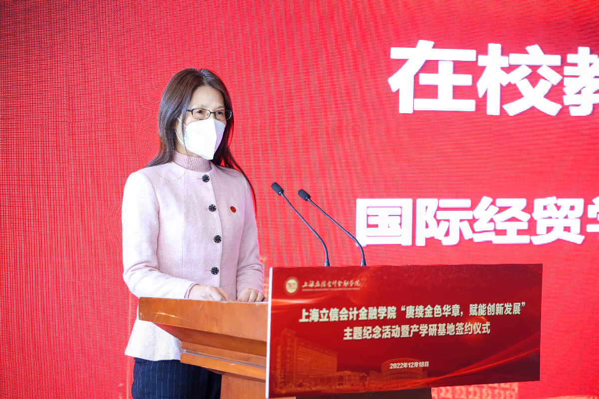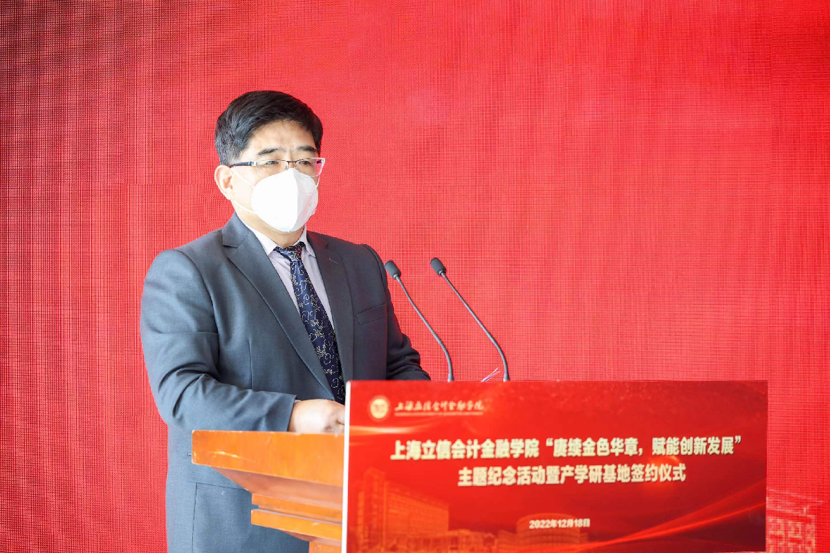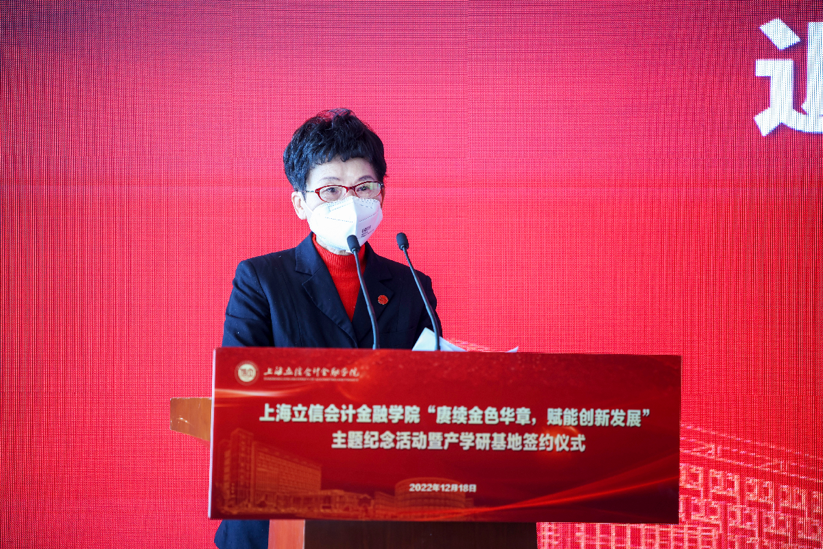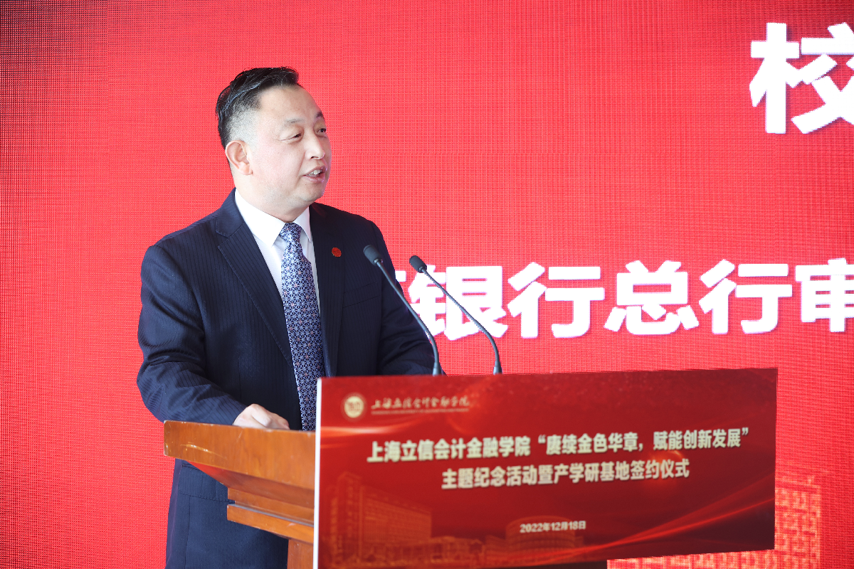 12月18日,“赓续金色华章 赋能创新发展”主题纪念活动暨产学研基地签约仪式在上川路校区木兰书苑举行。中共上海市金融工作委员会书记信亚东,上海市教育卫生工作委员会副书记、上海市教育委员会主任王平,中国人民银行调查统计司原司长盛松成,校党委书记解超,党委副书记、院长杨力,党委副书记、副院长王军华,以及历任校领导和来自金融系统、企业机构领导、校友们通过线上线下相结合的方式参会。